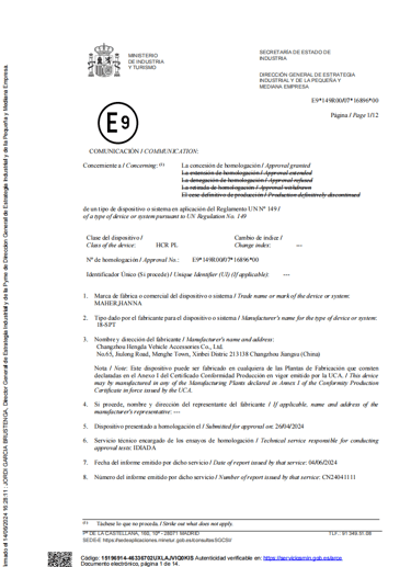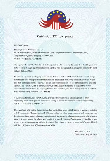 DOT US Department of Transportation Certification: Fully compliant with relevant US regulations (such as FMVSS), our products have obtained the necessary certification for entry into the North American market, representing a high level of adherence to North American safety standards.